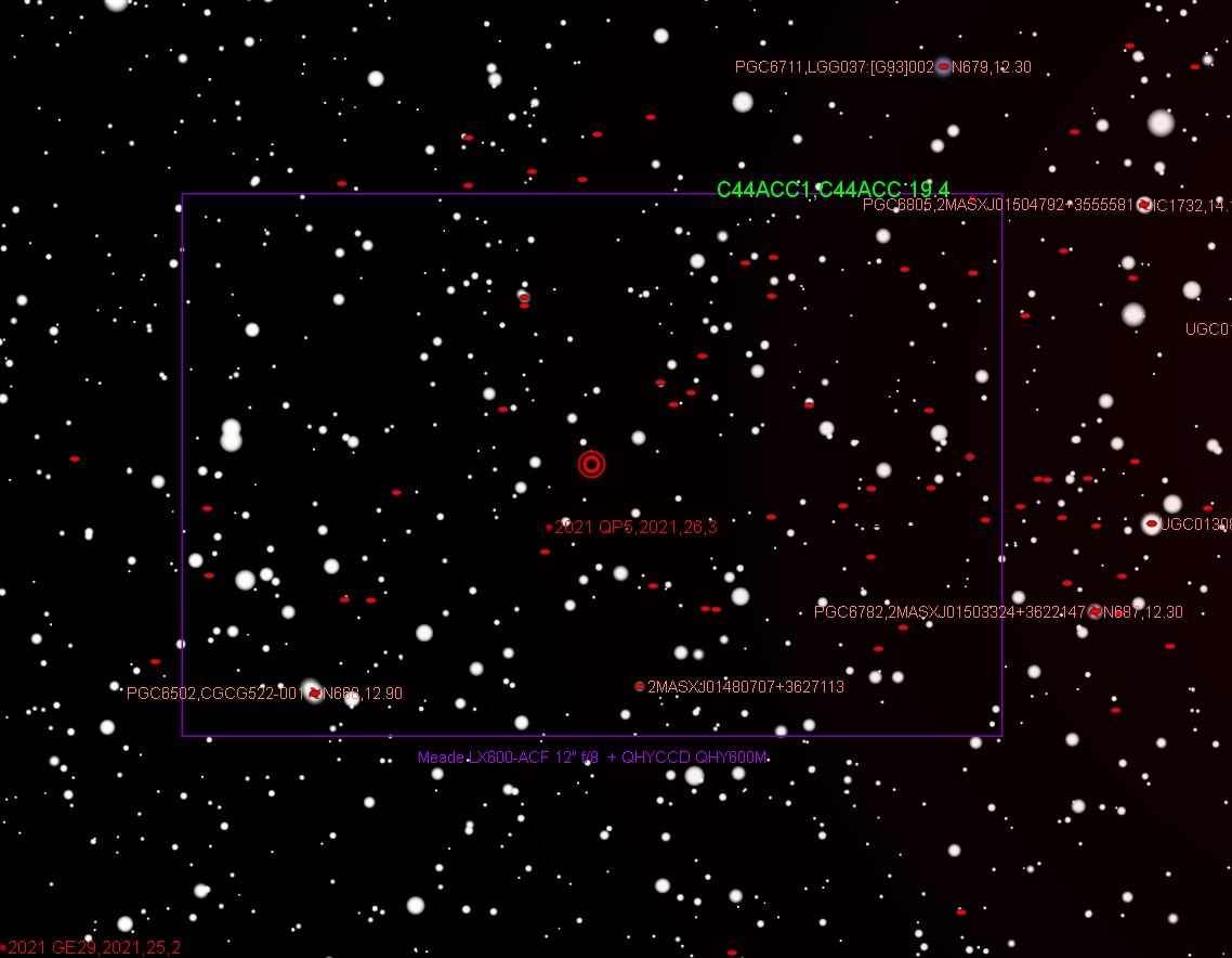 The object is shown here in TheSky X slightly above the central scout position